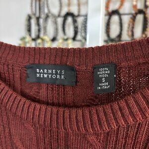 Barneys New York Brown Crewneck Cable-Knit Sweater Small Merino Wool