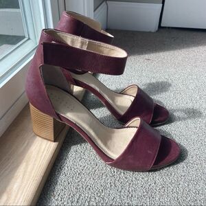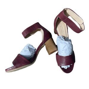 Barney’s New York Heel Sandals with ankle strap. Excellent used condition- worn only a few times. Red leather, Velcro ankle strap. Size 39.