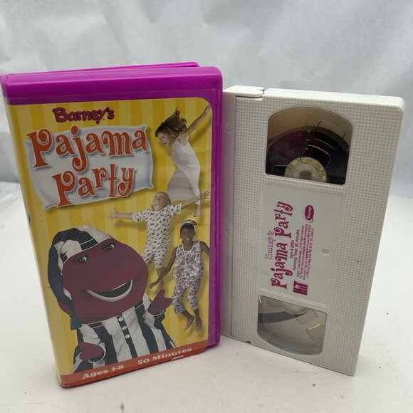 Barney's Pajama Party VHS Video Tape Sing Along Songs Purple Case