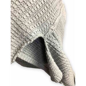 Light grey, incredibly soft, chunky knit longline cardigan duster. Two front deep pockets, short side slits.