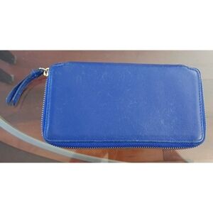 Barneys New York Cobalt Blue Leather Zip Around Wallet