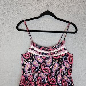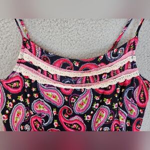 Barok Paris Womens Paisley Tank Mini Dress Sz M Lace Inlay Adjustable Straps