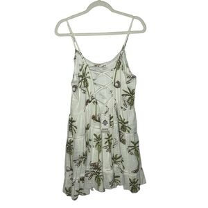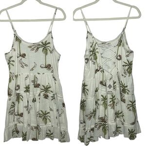 Barok Tropical Palm Tree Print Ivory Babe Doll Mini Dress NWT