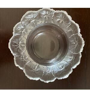 1930's Antique Frosted Glass Wine - Champaign Coaster with Geranium Motif