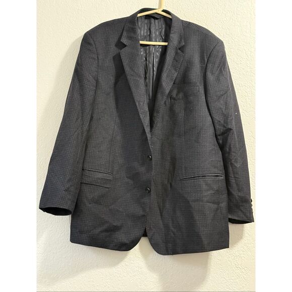 Baroni 100% Wool 2 Button Blazer Jacket SIZE 50L 50 L blue check