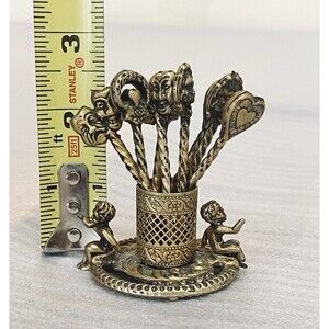 #VintageBaroque #CherubCocktailPicks #HorsDoeuvresSet #BarwareDecor #TheaterFacePicks #GoldToneVintage #BrassPickHolder #VintageEntertaining #RetroBarware #CollectorsPiece