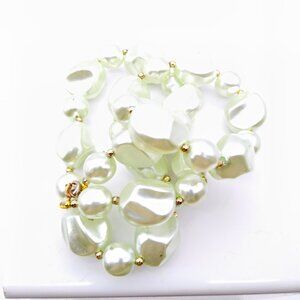 Baroque Faux Pearl Strand Necklace, Vintage Lustrous White Beads with Gold Tone