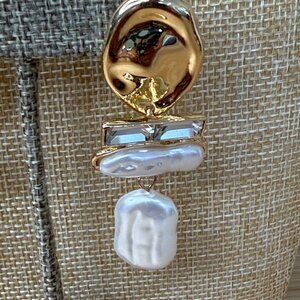 Elegant and luxurious, these earrings feature baroque pearl drops, gold-tone accents, and crystal details that add sophistication to evening or formal wear.