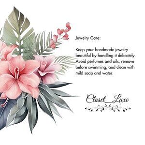 ❣️ Handmade Jewelry Care: Our handcrafted jewelry pieces are dainty and delicate and need to be handled gently. Please do not expose jewelry to excess perfume, oils, chlorine, or bleach. To keep them looking new and prevent them from breaking do not wear your jewelry when swimming or showering. To clean your jewelry use a mild soap and warm water and gently clean and pat dry.
