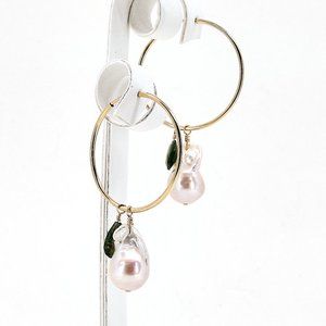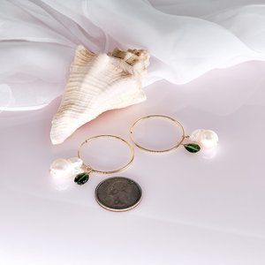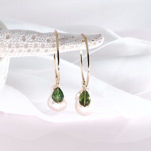 Baroque Pearl & Green Tourmaline Hoop Earrings, 14K Gold Filled Thin Hoops