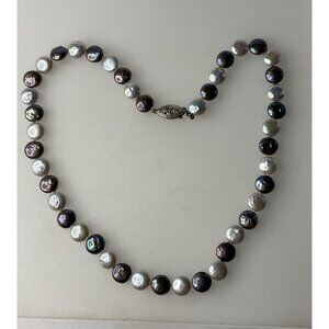 Baroque Pearl Necklace 18" With Sterling Silver Clasp In Iridescent Tones
