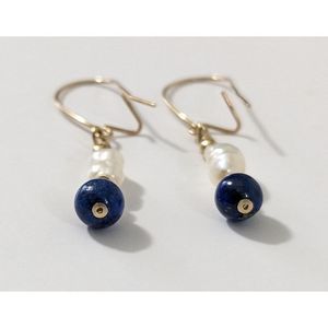 Baroque Pearl Lapis Lazuli Gold Tone Kidney Wire Dangle Earrings Elegant Dainty