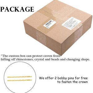 Queen crowns size is 3.3 inches in height,6.7 inches in diameter.Packaged in exquisite carton box with 2 hair pins .Black Holloween crown add a bit of mystery to your costume,rose gold wire is to make black crown more unique