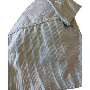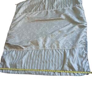 STUNNING light blue Satin throw mini blanket features French or Italian style Baroque pattern with lined pattern on the bottom edges and laced detail.