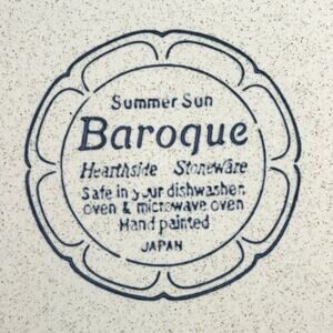 This vintage Baroque Summer Sun Hearthside Japan dinner plate plus the matching large platter from the 70s-80s is sure to brighten up your table! The vibrant sun speckled design is perfect for adding a touch of retro charm to any meal. The measurements are: