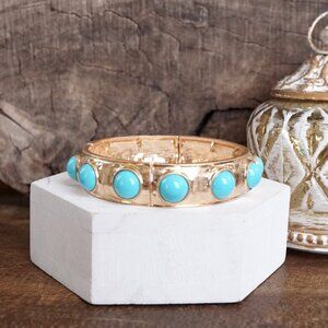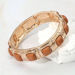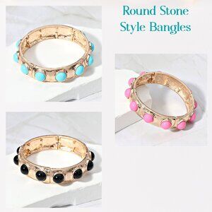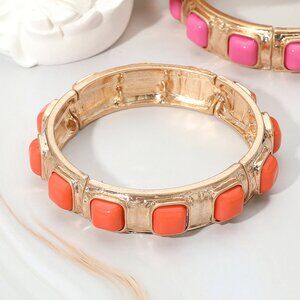 Baroque Vibe Gold Stretch Bangle Bracelets with Colorful Geometric Stones NEW