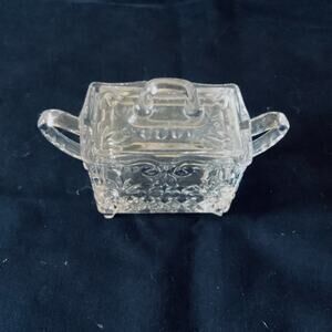 Cut crystal glass sugar bowl with lid from Baroque collection by Godinger in good preowned condition. No chips or cracks.