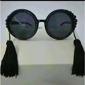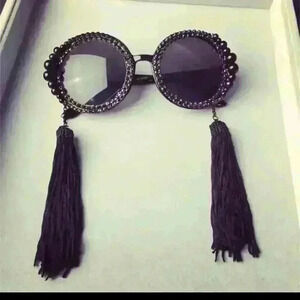Baroque round tassel pearl rhinestones decoration sun large frame sunglasses