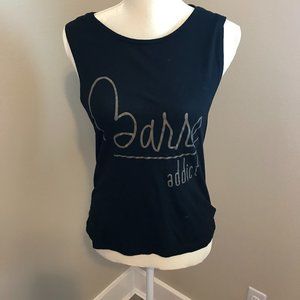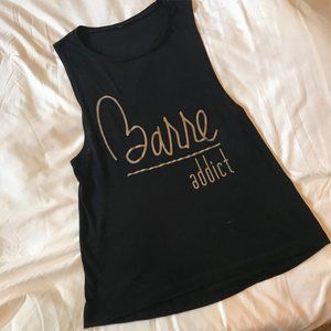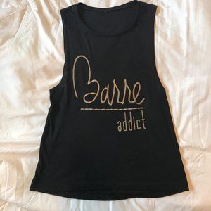 Black muscle tank from Emi Jay with "Barre addict" in gold lettering. Overall very good condition. Size small. Perfect for any pure barre addicts out there!