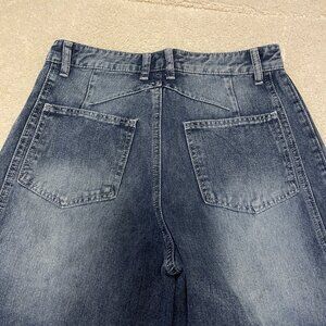 Barrel Leg Jeans PANTS Womens Size S 29"W 24.5"L Blue Cotton Blend SEAM DETAIL