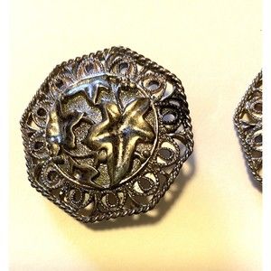 A great pair of collectible silver tone clip Barrera for Avon earrings are an octagonal shape. They measure approx. 1 1/2" wide.