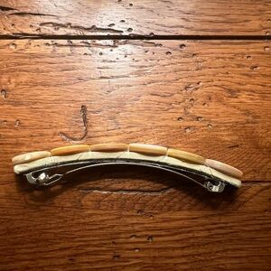 Dillards mother of pearl french clip barrette. The clip measures 4 inches. The decorative side measures about 4 1/2 inches.
