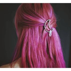 Barrette Crescent Moon Silver Prasiolite Green Quartz Natural Obelisk Dangle Hair Clip. 3.25" H x 1.25" W measured. Retail $36