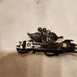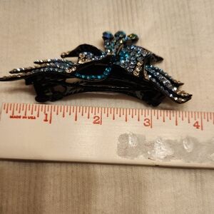 Elegant ,classy,and beautiful barrette with shimmering rhinestones in blue, teal and silver tones. Perfect for adding a touch of glamour. Simply gorgeous for a night out with your hair up or pony tail. Excellent condition
