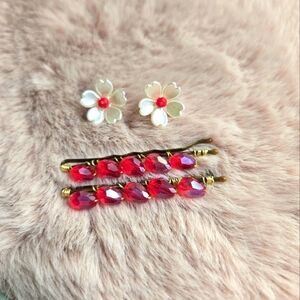 ☆Wedding, baby shower, birthday, gift, hair accessories,studs pearls, flower, Czech bead.