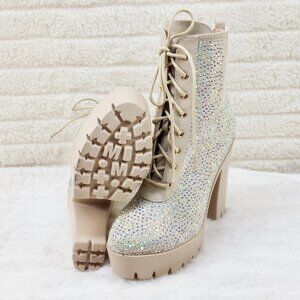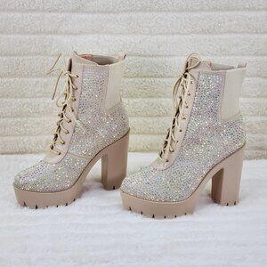 Barri Nude Rhinestone Chunky Heel Platform Ankle Boots