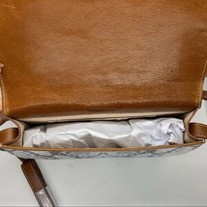 Gold accent hardware on flap and strap