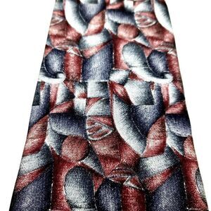 Barrington Silk Tie Gray Reddish Brown Wide Abstract Print