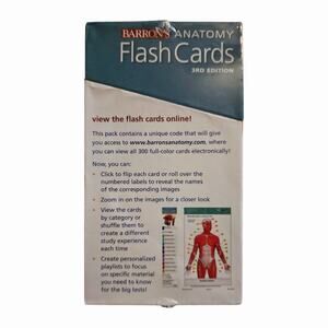 This pack contains a unique code that will give you access to www.barronsanatomy.com, where you can view all 300 full-color cards electronically!