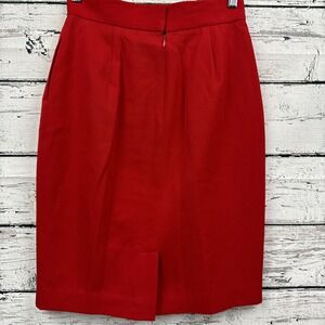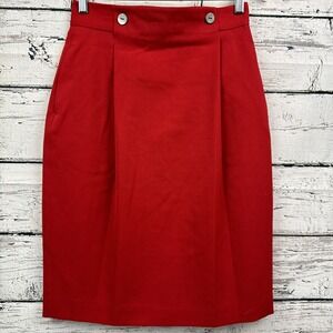 Keywords: Barry Bricken, red skirt, wool skirt, pencil skirt, career skirt, formal skirt, button front, size 10, womens skirt, classic skirt, office wear, work skirt