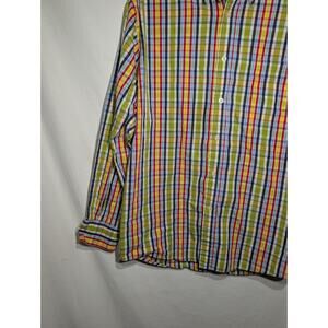 Barry Bricken Mens Button Down Plaid Shirt Sz L Colorful Preppy Career Business