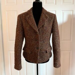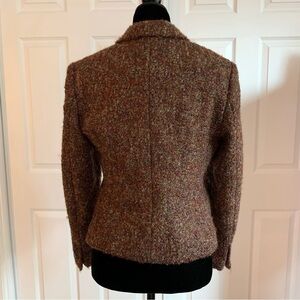 Stunning vintage boiled wool blazer by Barry Bricken for Mark Shale. The wool fiber has warm tones of red, orange and tan. Fully lined so it’s not itchy. Has light shoulder pads for structure. Tailored to fit perfect. In excellent condition. No stains or holes. 19” pit to pit, 17” across waist, 22” length, 24” sleeves.