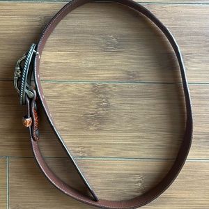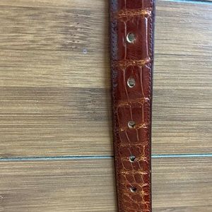Beautiful vintage Kieselstein-Cord Belt. Prestine silver western belt buckle with genuine allligator belting. Inside signature stamping still intact. Brown/Rust alligator. Belt measures 1ʻ wide. Estimated to fit waists 29.5"-33.5" when measuring belt hole placement. Comes with original dust cover bag.