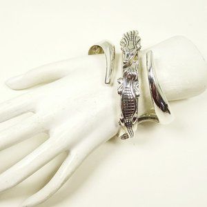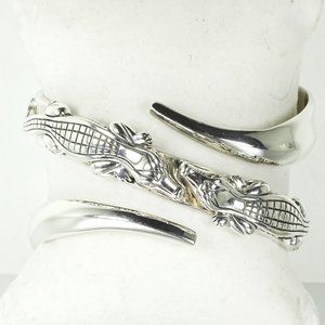 Barry Kieselstein-Cord Sterling Silver Alligators W/Diamond Eyes Cuff Bracelet