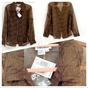 Barry Long Sleeve Button Down Blouse Size L Vintage NWT
