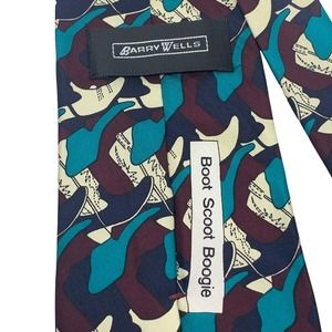 Barry Wells Boot Scoot Boogie Men's Silk Tie Necktie Green Brown Cream Western