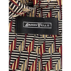 Barry Wells Tall Man Silk Tie 65.5 X 4” Black, Burgundy, Gold, Gray Necktie Long