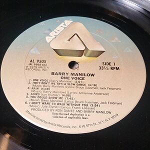 Barry Manilow One Voice vinyl record. Classic album for music lovers.