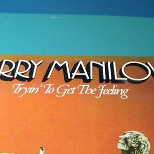 Barry Manilow 'Tryin' To Get The Feeling' vinyl record. Features a vibrant orange cover.
