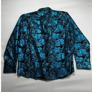 Barry.Wang Men's Long Sleeve Black Blue Sheen Floral Dress Shirt - Size 2XL