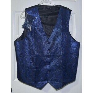 Barry.Wang Vest Men XL Blue Black Paisley Formal Set Bow Tie Hanky Wedding NWOT