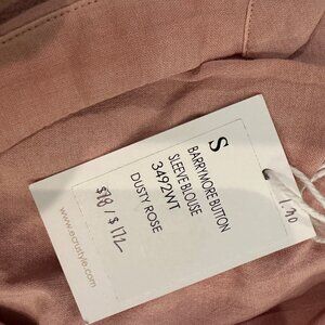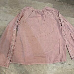 Barrymore Button Sleeve Blouse Ecru Small Dusty Rose Lightweight Cotton NEW