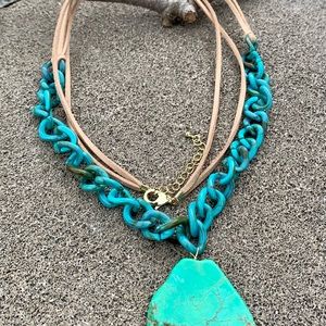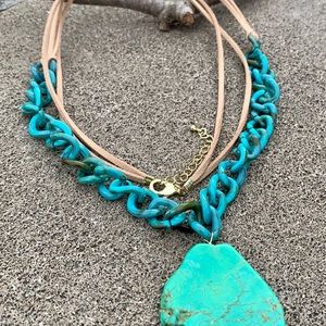 Barse Double Leather Strand Turquoise Resin Link Turquoise Magnesite Necklace