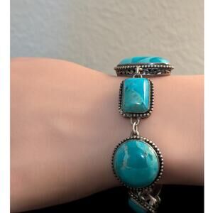 Barse Heavy Chunky 925 Sterling Silver Turquoise Chain Toggle Clasp Bracelet