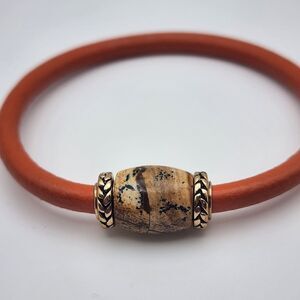 Barse orange leather bracelet with a picture jasper stone.