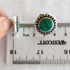2) $45. Signed "Woods," these post earrings feature malachite cabochons in round beaded sterling settings. The dealer described the artisan as Navajo, possibly Samuel Woods. The pair weighs 12 grams.